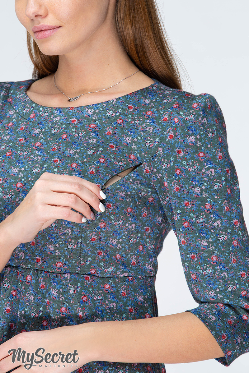 Платье для беременных и кормящих из струящегося трикотажа с цветочным принтом.